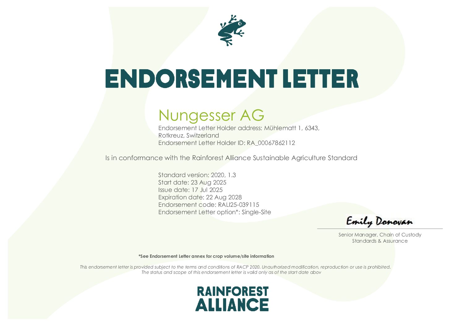 Nungesser hat ihren eigenen Code of Conduct zu den Themen Soziales, Unternehmerische Verantwortung sowie schonende Ressourcennutzung und Umweltschutz. Es ist unsere Absicht, dass alle Lieferanten von uns diese Richtlinien unterschreiben und einhalten. Nebst externen Audits prüfen wir die Umsetzung auch regelmässig selbst.