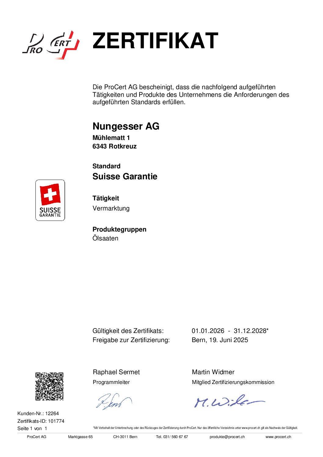Wo Suisse Garantie draufsteht, ist beste Schweizer Qualität drin. Das ist unser Versprechen. Ein Versprechen, das für klare Werte steht: Für eine nachhaltige Landwirtschaft. Für hochwertige Produkte. Und für Lebensmittel, die jeden Tag aufs Neue unsere Konsumentinnen und Konsumenten begeistern. Produkte mit der Garantiemarke Suisse Garantie werden unter Verwendung von Schweizer Zutaten landwirtschaftlichen Ursprungs in der Schweiz hergestellt und verarbeitet. Dafür sorgen strenge und unabhängige Kontrollen, die regelmässig durchgeführt werden.